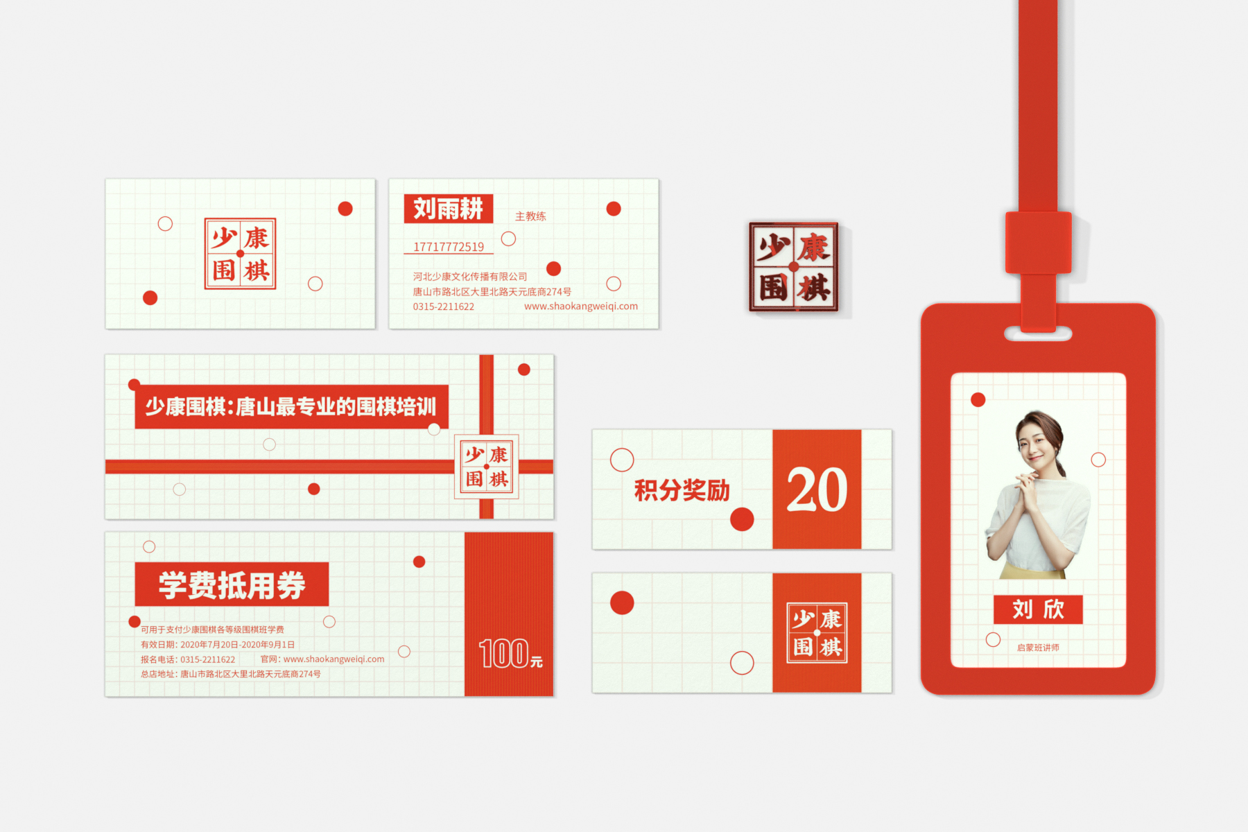 在少康围棋这个项目中,客户想要提升品牌形象,但开始并没有一个确定的风格诉求。在初期的交流中,参加他们的活动时,与小学生交流,观察学生家长的需求,最终逐步确定了现在的方案。因为客户的围棋培训业务主要服务于儿童,所以放弃了围棋常用的黑白配色,选用鲜亮的橙色作为主色,用棋盘方格的元素作为视觉识别的基础,贯穿于logo,以及所有平面物料中。使得整体的设计干净,整齐,鲜明,统一,帮助客户更好的展示自己的信息,以形成更加专业的形象。